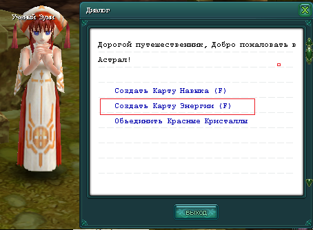 Карта навыка (F) = 1x Чистая карта + 10x Красных кристаллов энергии + Сущность навыка