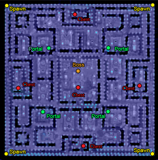 - Вход на второй уровень появляется в случайном месте на первом этаже с каждым открытием карты.